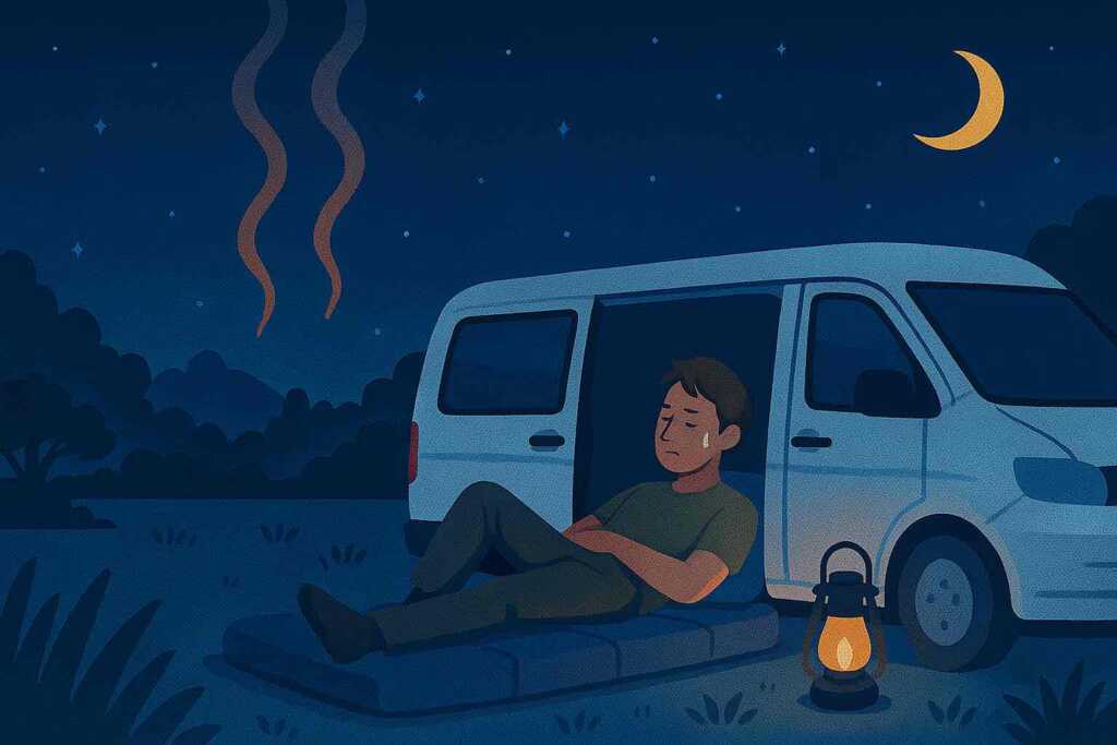 実際、夕方〜夜にかけて車のボディやシートに熱がこもり、夜になってもなかなか冷えません。寝苦しさ・寝汗・熱中症のリスクもあるため、暑さ対策は必須です。
