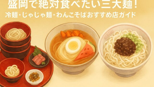 国内ストーリー 【岩手県】盛岡で絶対食べたい三大麺!冷麺・じゃじゃ麺・わんこそばおすすめ店ガイド 盛岡の名物「三大麺」冷麺・じゃじゃ麺・わんこそばを実食レポート!東家・白龍・ぴょんぴょん舎など人気店の味やアクセス、食べ比べのコツを旅人目線で紹介します。 2025.10.09 kohei 国内ストーリー未分類