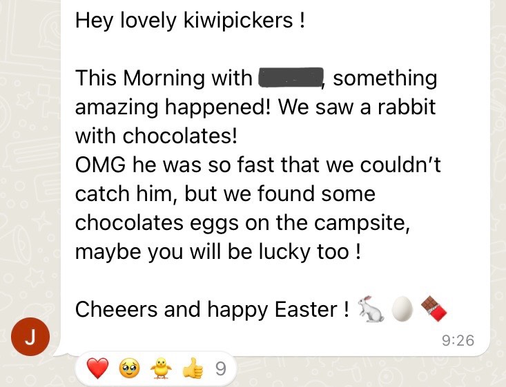 私たちが辞めるときには、チームメイトがメッセージカードを贈ってくれ、温かく送り出してくれました。 その後、旅を続けるなかで再会したり、家に泊めてもらったり。 たった1ヶ月半でしたが、そこで生まれた絆は、私たちのニュージーランドライフを彩ってくれました。