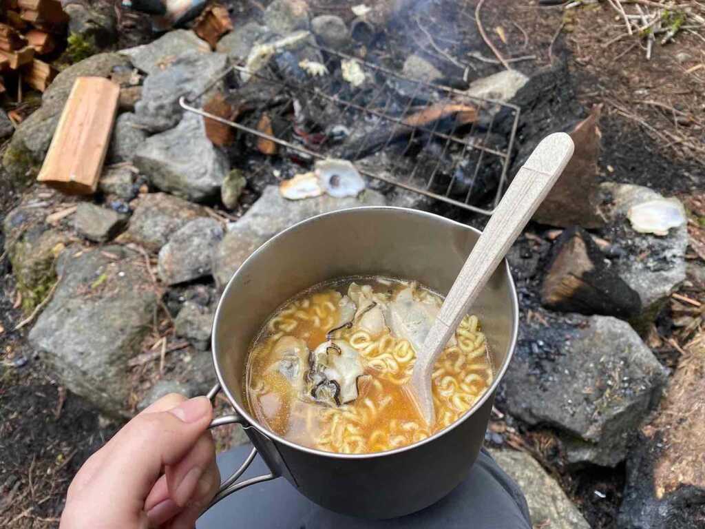 何日も歩き続けた旅の終盤に、火を囲んで日中にゆっくりラーメンを作って食べる時間が贅沢すぎました。