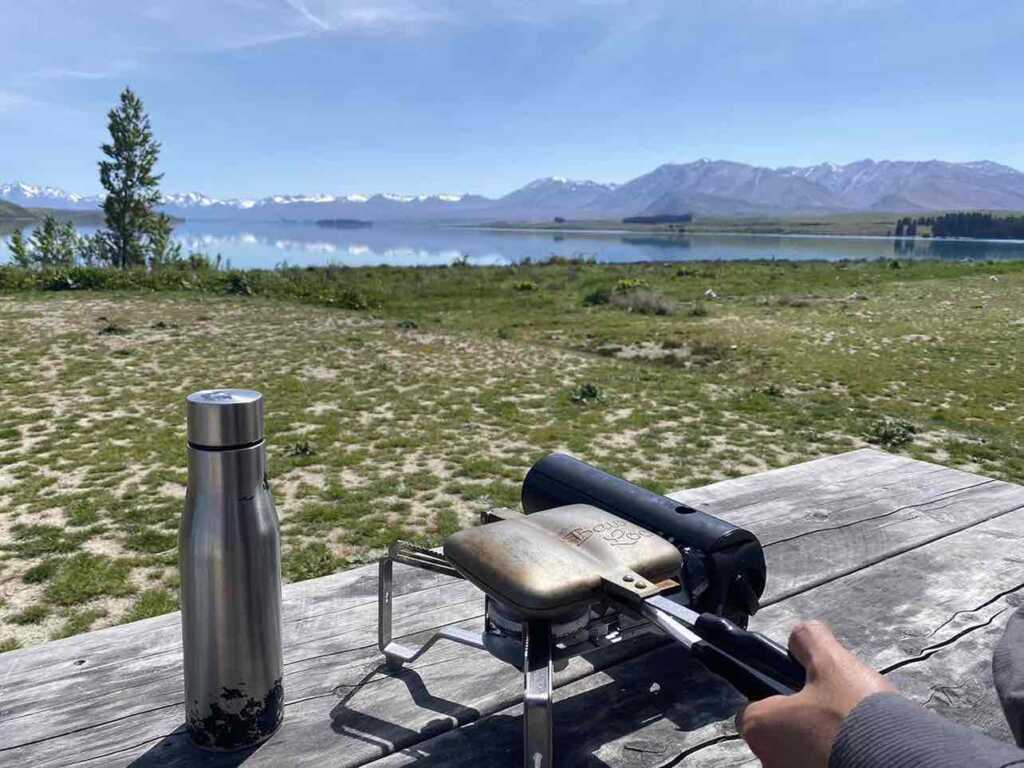 私たちも、湖を眺めながらジップラインで風を切ったり、絶景をバックにホットサンドを焼いて食べたり、湖畔でのゆったりとした時間を満喫しました。