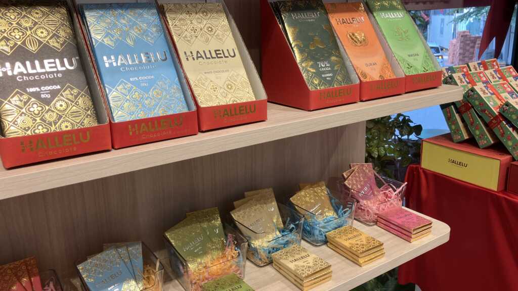 HALLELU(ハレル)はチョコレートショップです。街歩きをしている途中、ガラス越しにチョコレートが並んでいる店内が気になって立ち寄ってみました。